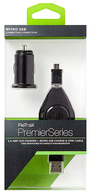 - Câble USB vers Micro-USB rétractable avec chargeur AC, par Retrak